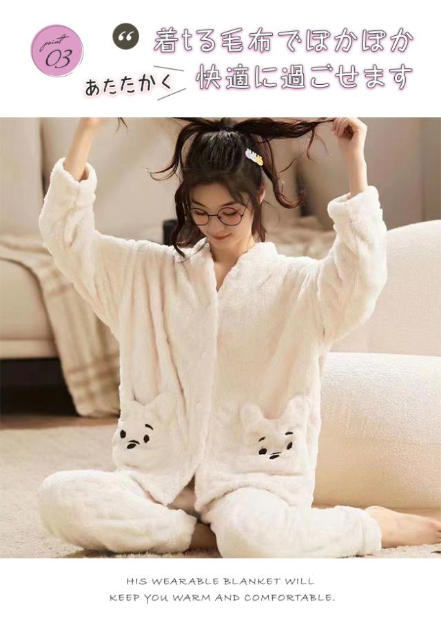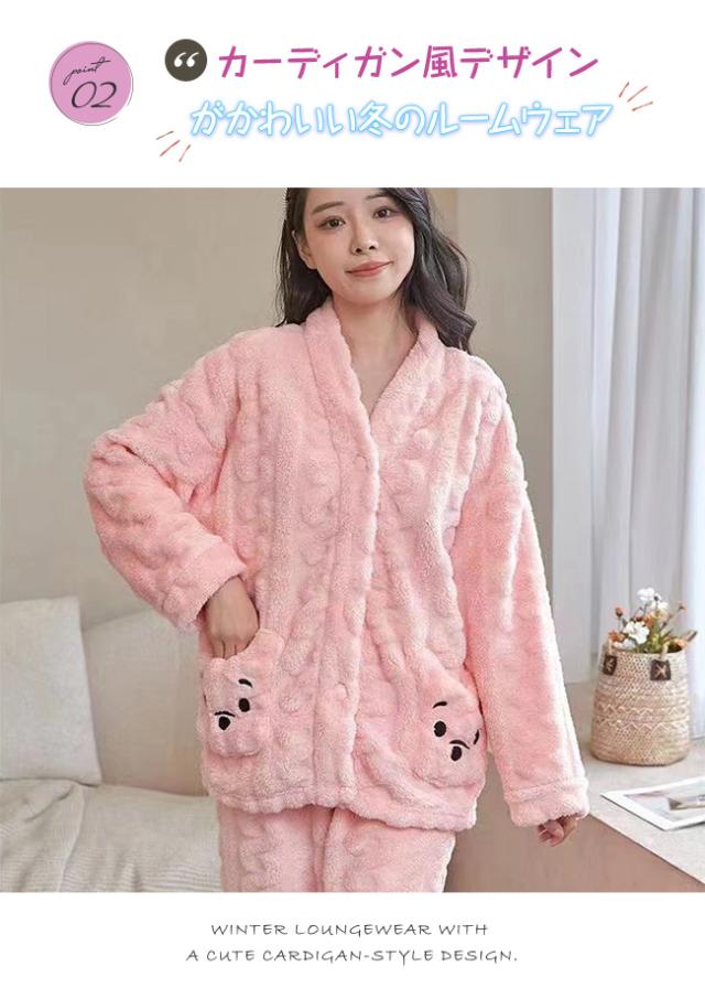 ルームウェア 上下セット パジャマ レディース 冬 フランネル もこもこ 寝巻き ボア 可愛い 部屋着
