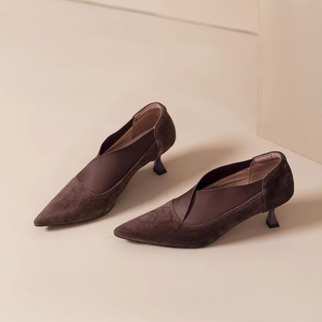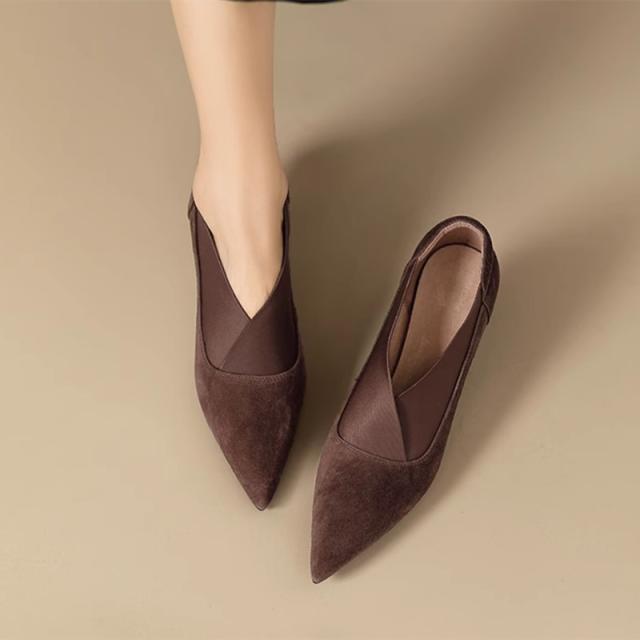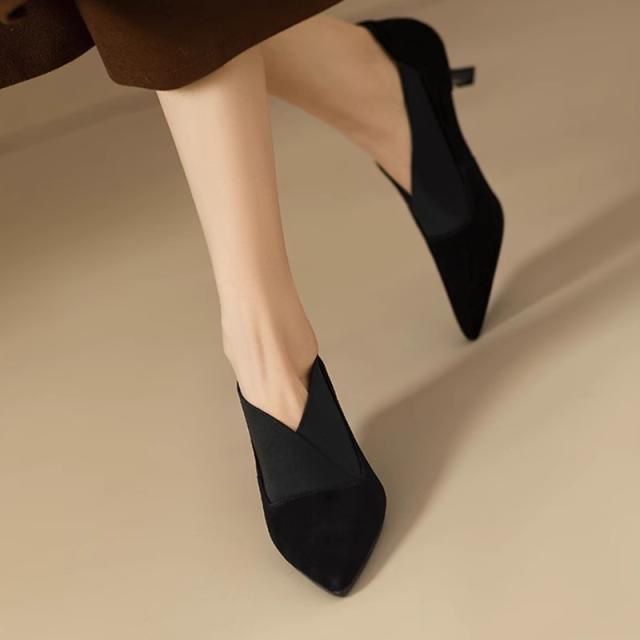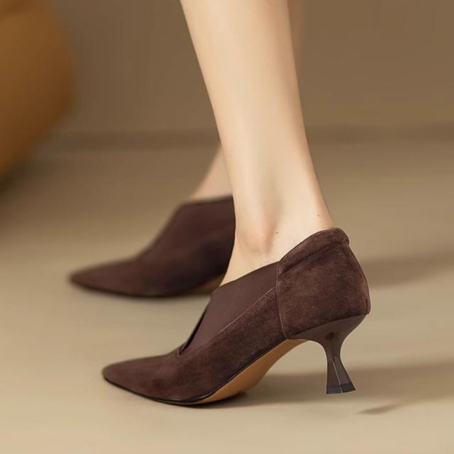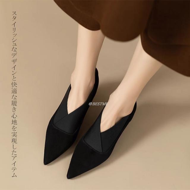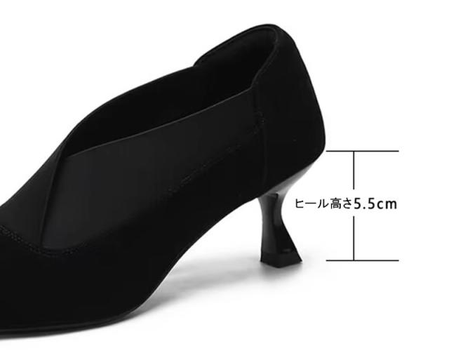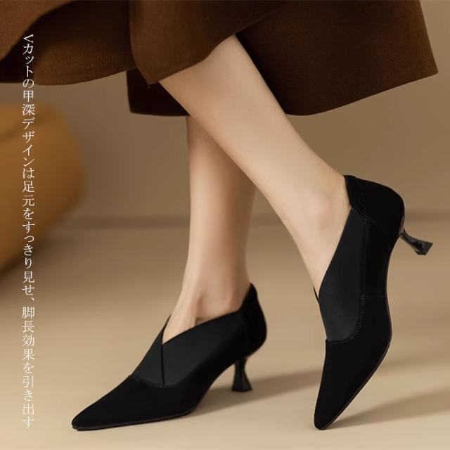 送料無料 シープスエード 美脚 Vカット ブーティパンプス 甲深 スリット パンプス 歩きやすい 痛くない エレガント レディースシューズ 女性らしい パンプス 本革