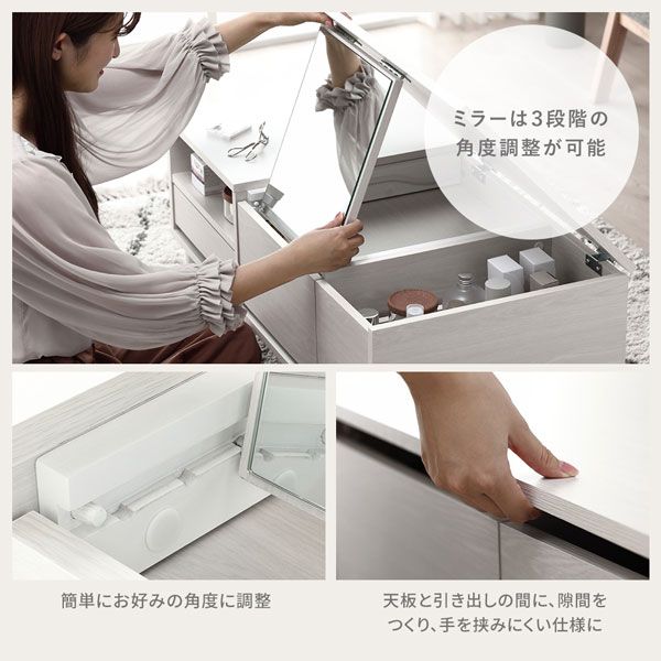 ・天板と引き出しの間に、隙間をつくり、手を挟みにくい仕様に