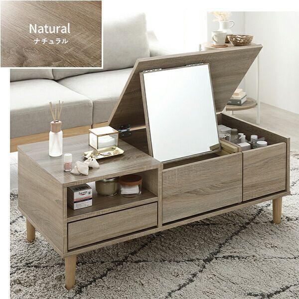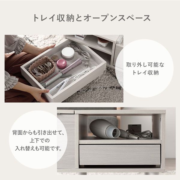 ドレッサー テーブル センターテーブル 約幅95cm ナチュラル オープン収納 トレイ収納 センター収納 ボトル収納 組立品 【北海道・沖縄・離島配送不可】