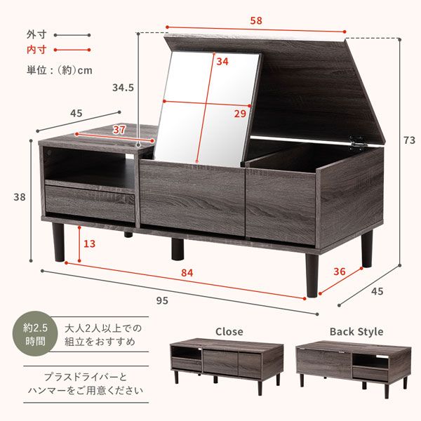 ・大人2人以上での組立てをおすすめします。(組立て時間:約2.5時間)