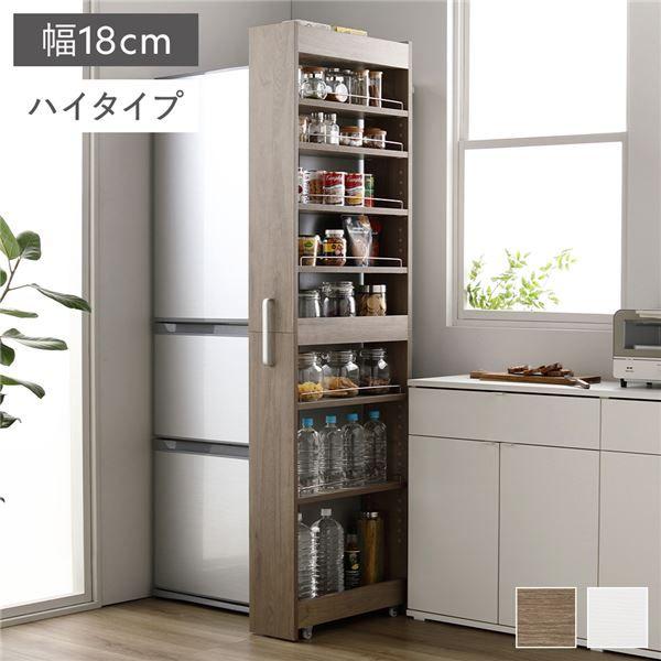 すき間 収納ラック ハイタイプ 幅18cm グレージュ キャスター 可動棚付き スリム キッチン収納 隙間収納 インテリア家具 組立品 【北海道・沖縄・離島配送不可】