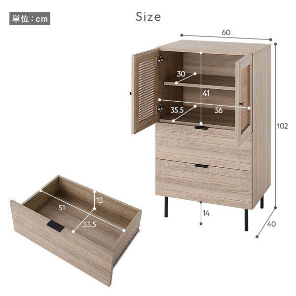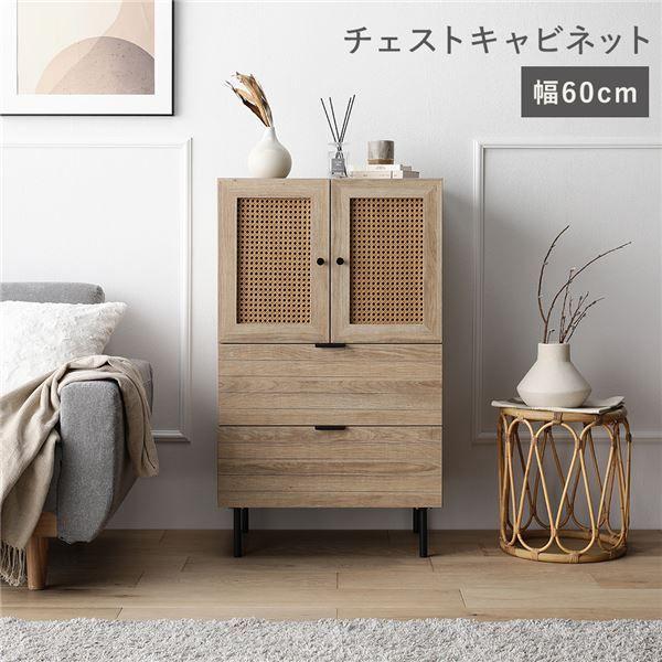 チェスト キャビネット 幅60cm ナチュラル ラタン調扉 可動棚 引き出し スチール脚 取っ手付き 大容量 収納棚 リビング 組立品 【北海道・沖縄・離島配送不可】