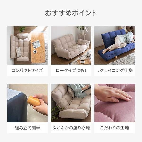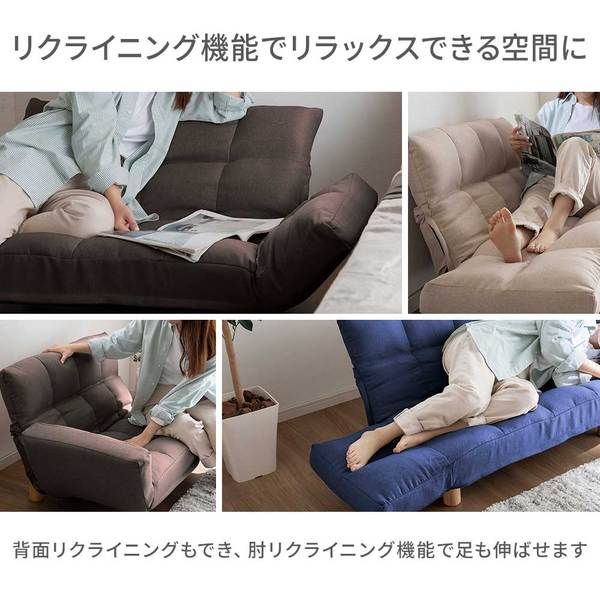 脚を外せはフロアソファとしても◎肘と背面もリクライニング可能。