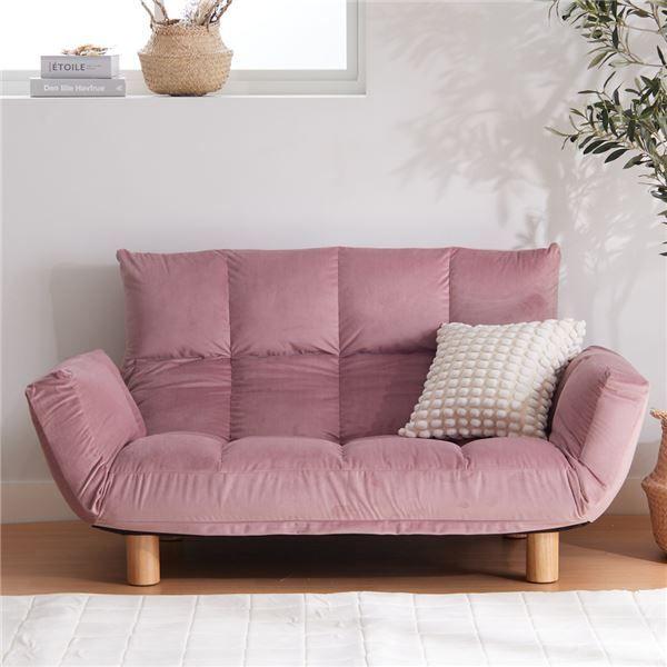 コンパクト脚付ふかふかカウチソファ LIRAKU ベロアピンク 【北海道・沖縄・離島配送不可】