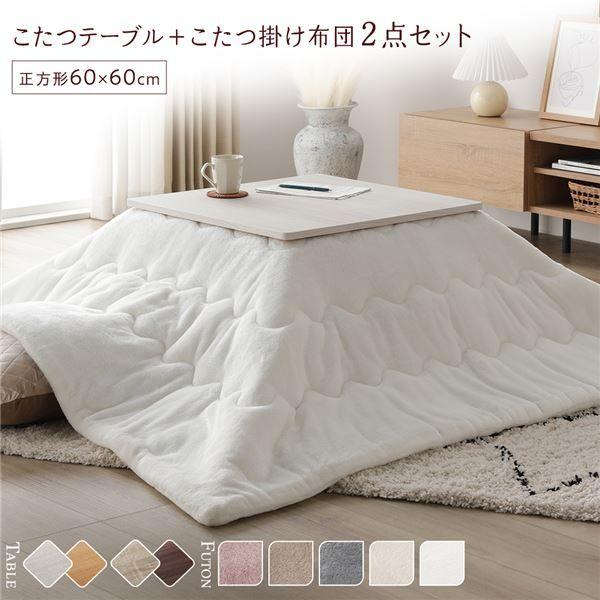 こたつ セット 2点セット 〔 テーブル 正方形 約60×60cm ホワイトウォッシュ/ナチュラル こたつ布団 約170×170cm ホワイト 〕 完成品 【北海道・沖縄・離島配送不可】
