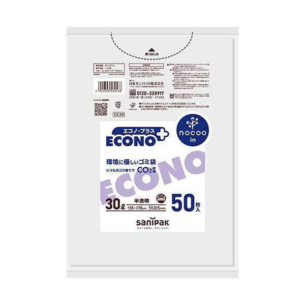 (まとめ) 日本サニパックエコノプラス nocoo in 半透明 30L 0.015mm CE34 1パック(50枚) 〔×5セット〕 【北海道・沖縄・離島配送不可】