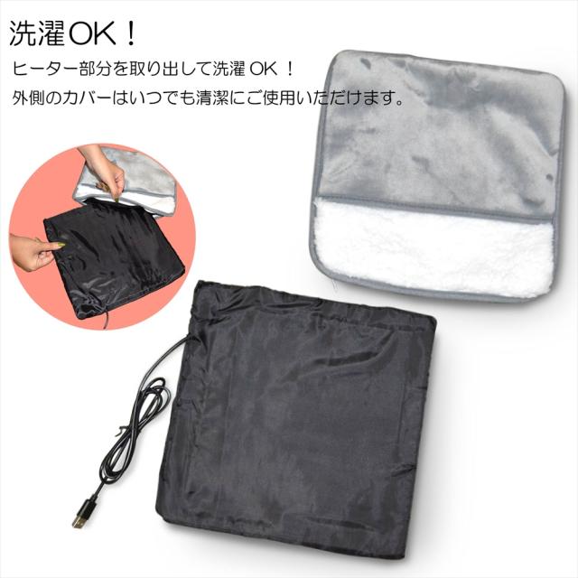 フットウォーマー USB 足元ウォーマー 足元ヒーター 足温器 足入れヒーター USB給電 USB電源 もこもこ あったかグッズ グレー モバイルバッテリー ホットマット 寒さ対策 防寒 冬 冷え性 デスク オフィス コンパクト 洗える 洗濯OK