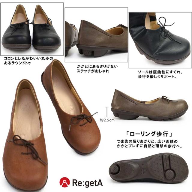 リゲッタ ツヴォル レディース パンプス TB105 リボン フラットシューズ 日本製 Re:getA 2ball