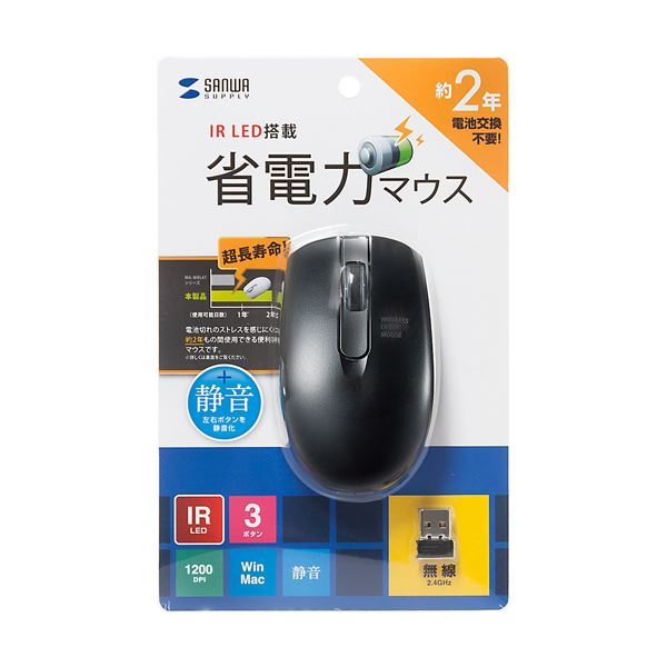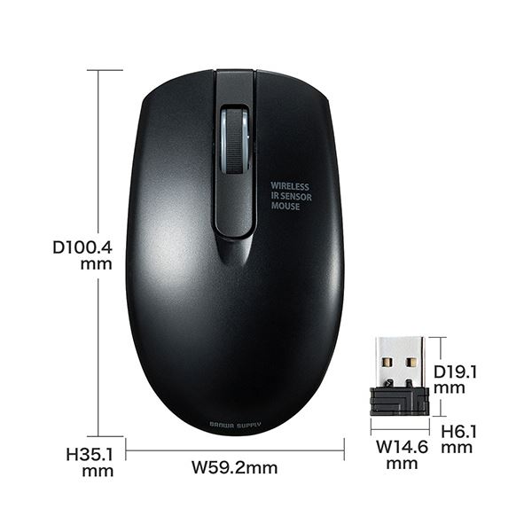商品仕様: サンワサプライ ワイヤレス IRLEDマウス ブラック 黒 MA-WIR132BK 1個