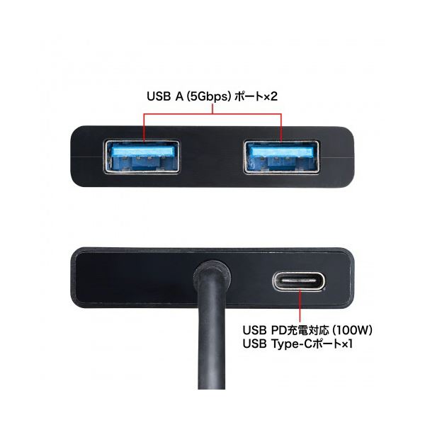 商品仕様: サンワサプライUSB Type-C ハブ(Aポート×2・Type-Cポート×1) ブラック 黒 USB-3TCP9BK 1個
