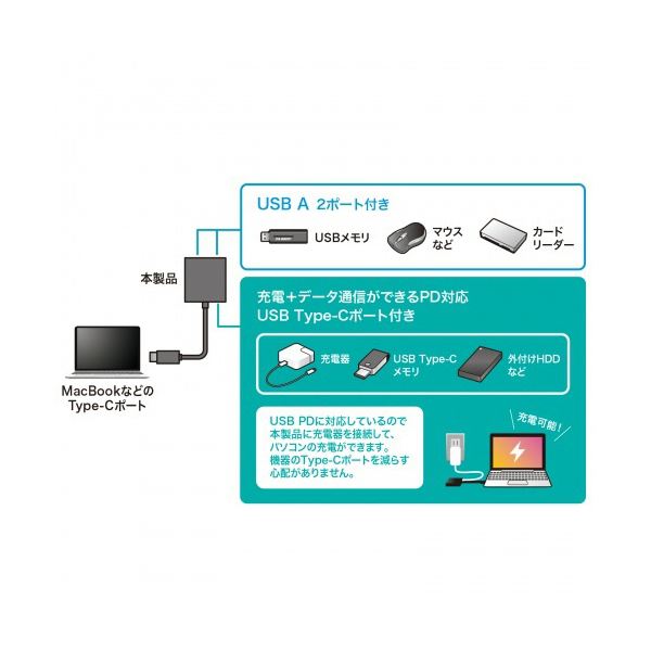 コネクタ:USB Type-C(PC接続端子)×1、USBType-Cメス×1、USB Aメス×2