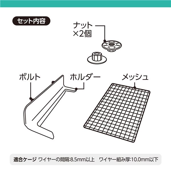 ワイヤーの間隔:8.5mm以上、ワイヤー組み厚:10.0mm以下
