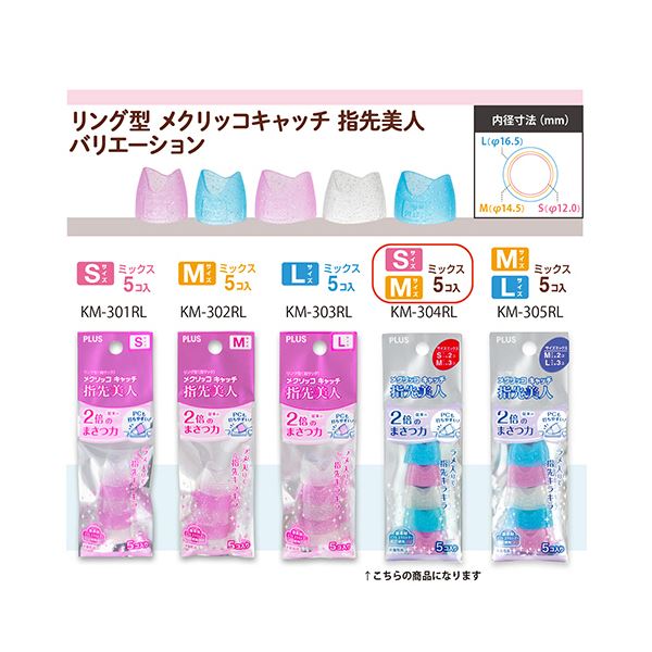 商品仕様: (まとめ) プラス リング型メクリッコ キャッチ 指先美人(ラメ入り) S/Mミックス ピンク・ホワイト 白・ブルー 青 KM-304RL1セット(50個:5個×10袋) 【×3セット】