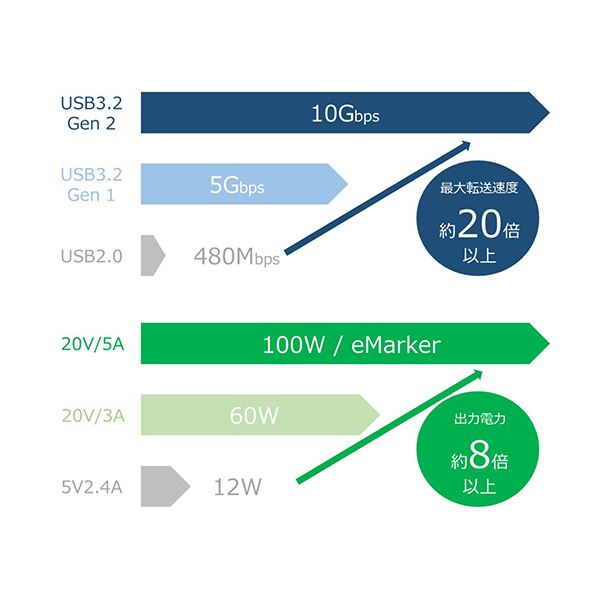 ●電圧:最大100W/20V/5A(eMarker搭載)