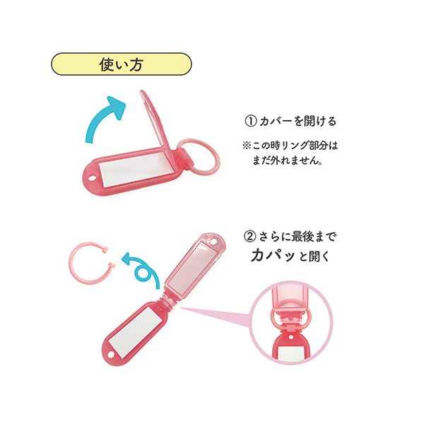 ●ネームカバーを1段階、2段階と開けるとリングが外れる2段階方式なのでしっかり固定。