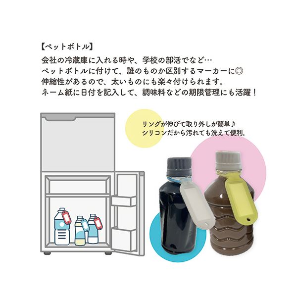 ●リング部がシリコン製で柔軟性・伸縮性があり、耐寒・耐熱に優れています。白のネームホルダー3個入×5パックセットです。