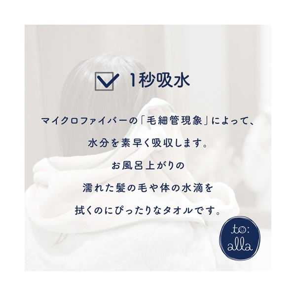 ●刺繍やタグをなくし凹凸を最小限に。裏表上下がないのでぱっと広げやすく、入浴後の体を包み込みぽんぽんと優しく抑えるだけで吸水します。