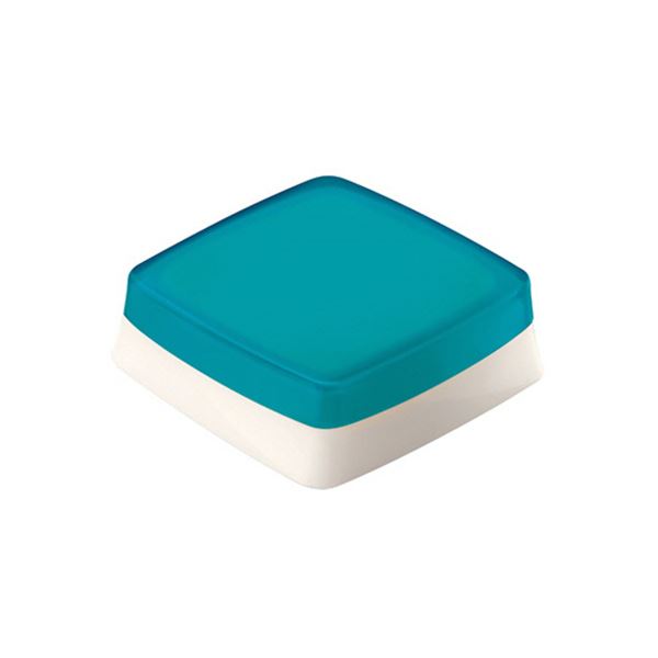 ●朱肉のフタが印マットとして使える、印マット付朱肉。本体色はターコイズブルーです。