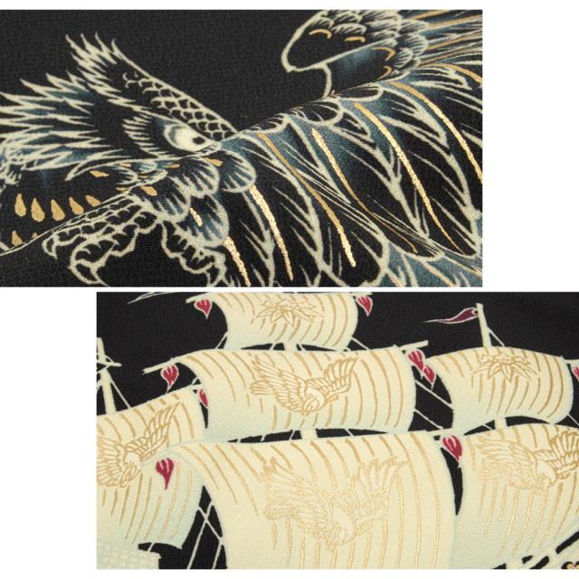 鷹が羽ばたき荒波を渡る帆船などを描いた和柄の華やかなデザインです。