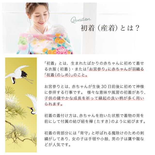 赤ちゃんのお宮参りを素敵に彩る『九重(ここのえ)』の日本製【高級初着(産着)・下着(長襦袢)】のセットです。