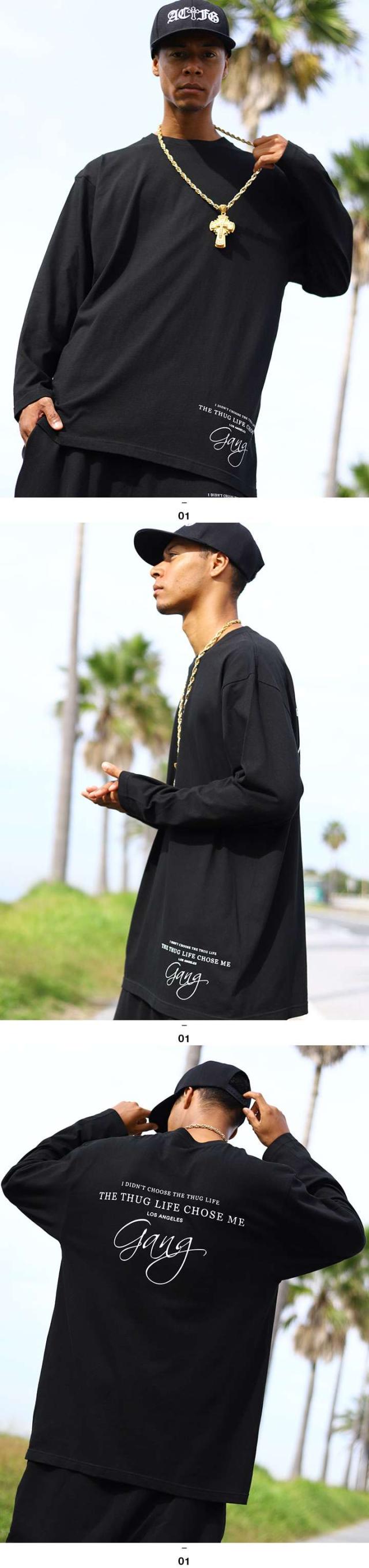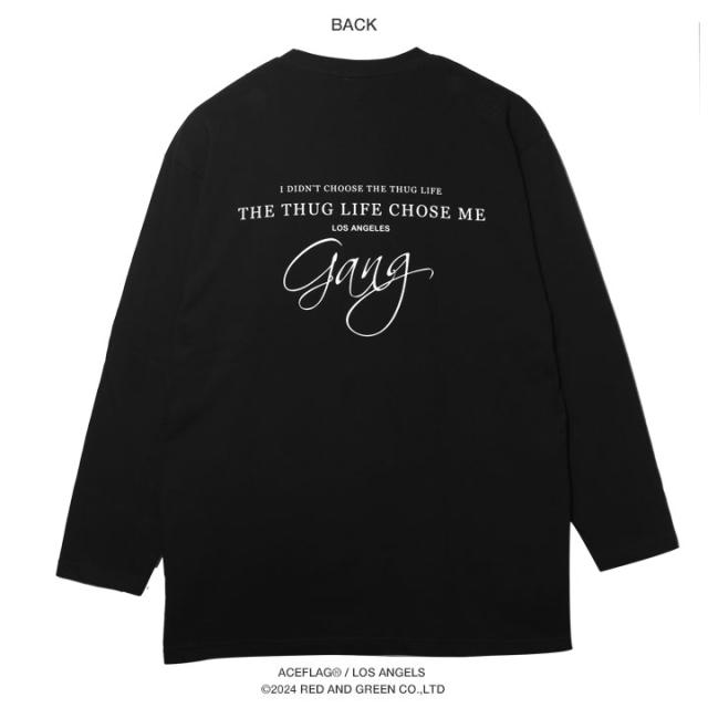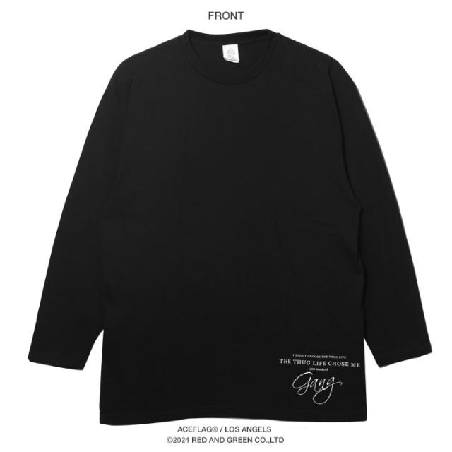 ACE FLAG ロンT メンズ 春秋冬用 黒 大きいサイズ エースフラッグ Tシャツ 長袖 おしゃれ かっこいい Gang ギャング 2Pac THUG LIFE サグライフ シンプル ビッグシルエット b系 ヒップホップ ダンス ストリート系 ハイ ブランド 服 AF-TL-LT-037