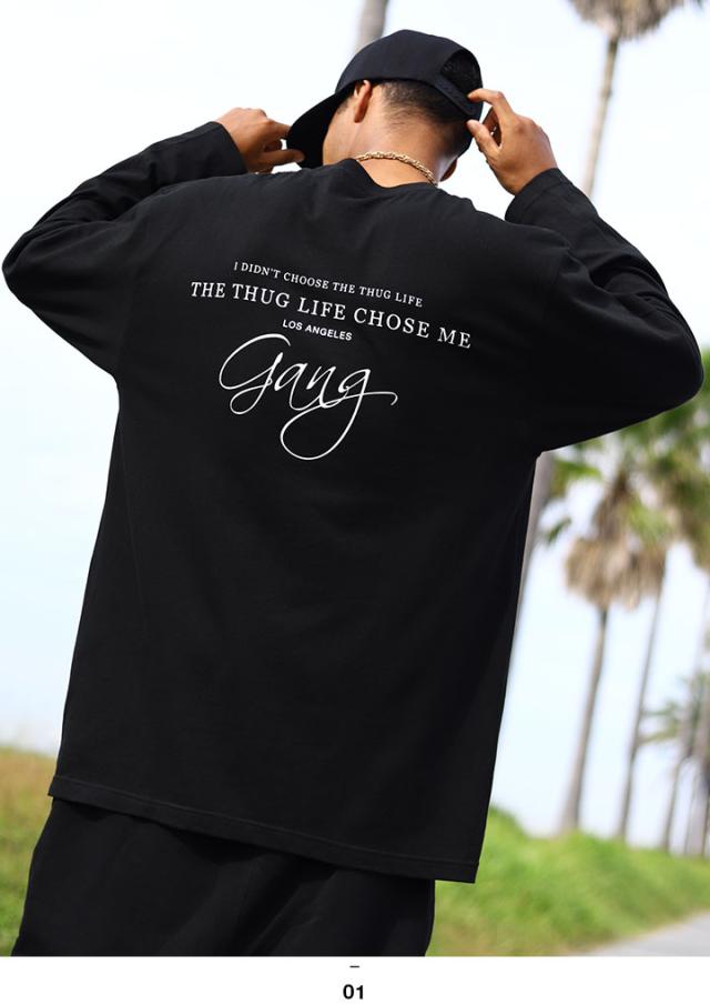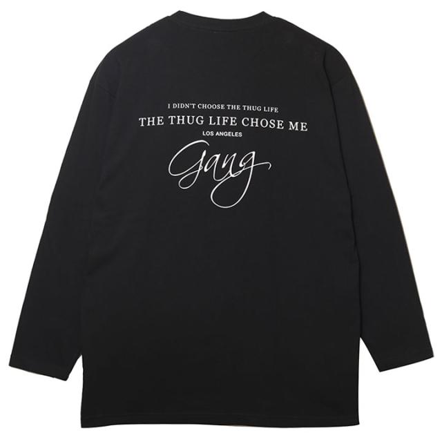 背中には、「I Didn't Choose The Thug Life, The Thug Life Chose Me」に加え、ハイエンドな筆記体による「Gang/ギャング」ロゴをオン。