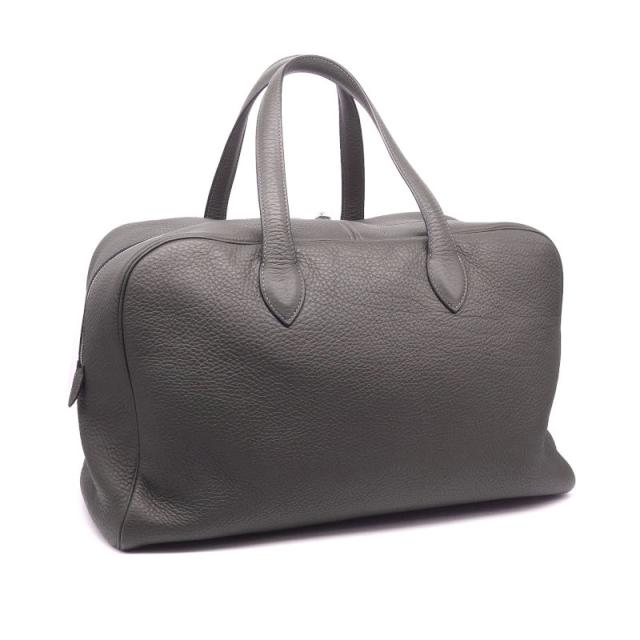 エルメス ヴィクトリア43 □E刻印 2001年製 トリヨンクレマンス グラファイト シルバー金具 ボストンバッグ グレー 灰色 中古 送料無料