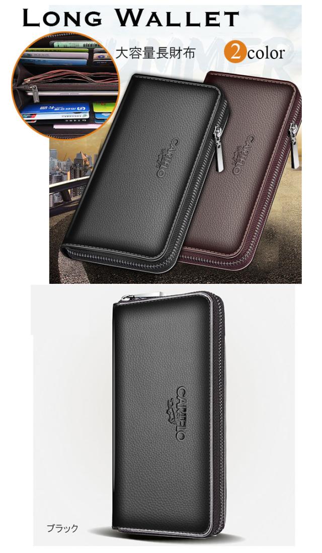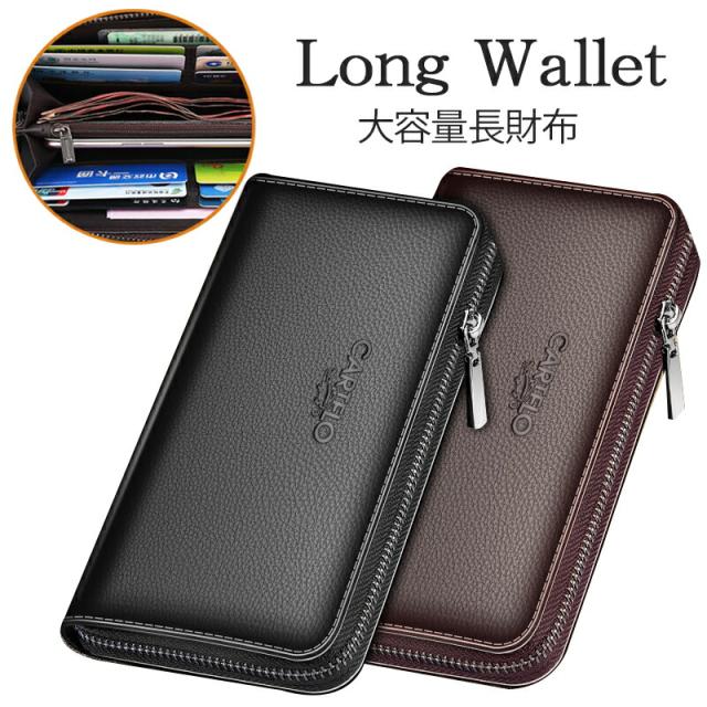 送料無料 長財布 メンズ ラウンドファスナー 大容量 PU さいふ レザー 男性 母の日 プレゼント なが財布