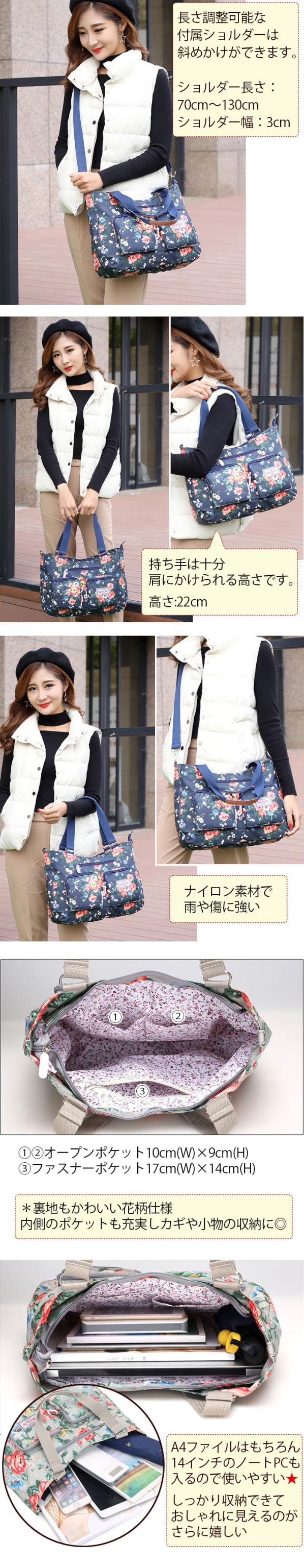 送料無料 ショルダーバッグ レディース 斜めがけバッグ ブランド レディースバッグ 人気 持ち手 2way 大きめ 大人 大容量 軽量 かわいい デイリー 鞄 おしゃれ 収納 旅行 ナイロン 防水 マザーズバッグ 母の日 プレゼント 花柄トート