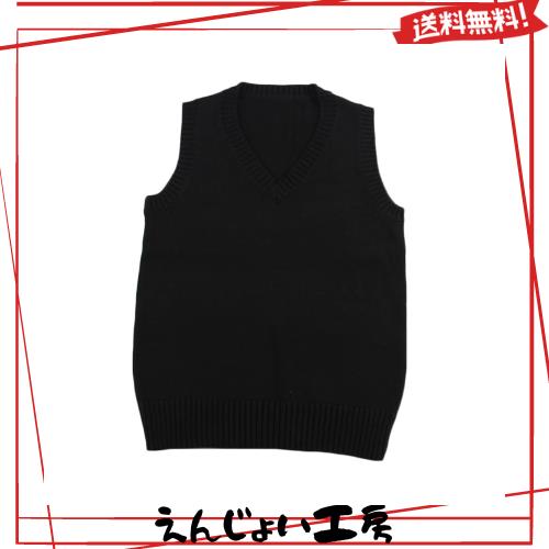 [Blostirno] スクールベスト 女子 学生 制服 ニート Vネック 通学用 無地 ゆったり ブラック(JP0028B-M)