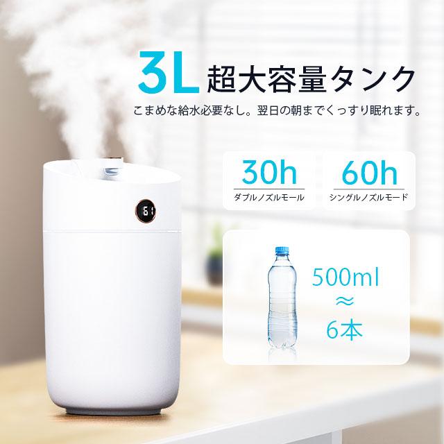 【20%超還元セレクト】加湿器 超音波式 大容量 3L ダブルノズル加湿器 LEDライト付き 上部給水 3段階調節 焚き防止 静音 節電 省エネ エコ 軽量 送料無料 卓上加湿器