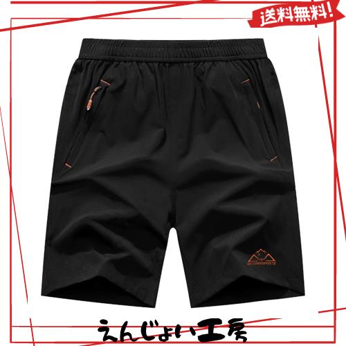 メンズ アウトドアパンツ ハーフパンツ 吸汗速乾ズボン スポーツ ランニング ショートパンツ ファスナーポケット付き ブラック1 XL