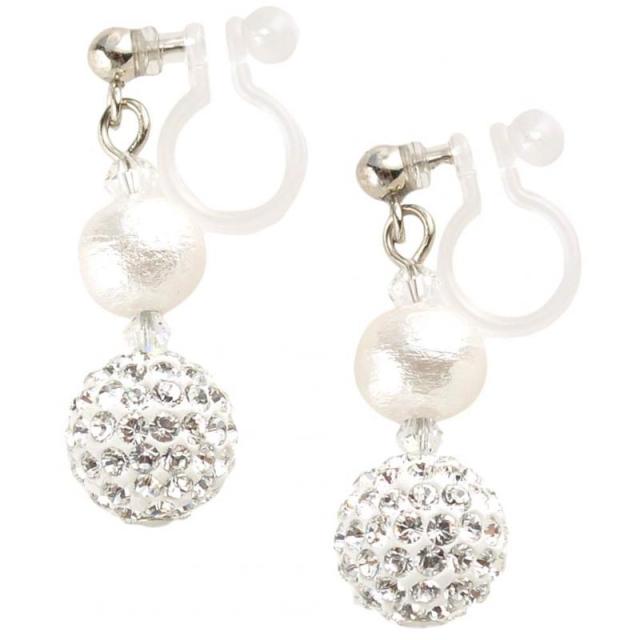 [R-days代官山] パヴェボール & コットンパール ピアス ノンホールピアス 「スノーマン」日本製 (ノンホールピアス)