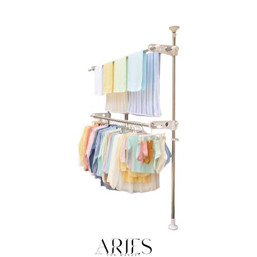 天馬 大きな脚形状と吸盤状クッションでしっかり固定でき、上下に引っ張るだけで簡単設置可能 洗濯物干し 組立式 屋外用 突っ張り式物干