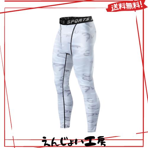 sillictor スポーツタイツ メンズ ロング アンダーウェア [UVカット + 吸汗速乾] 迷彩 ホワイト3316wh-2XL