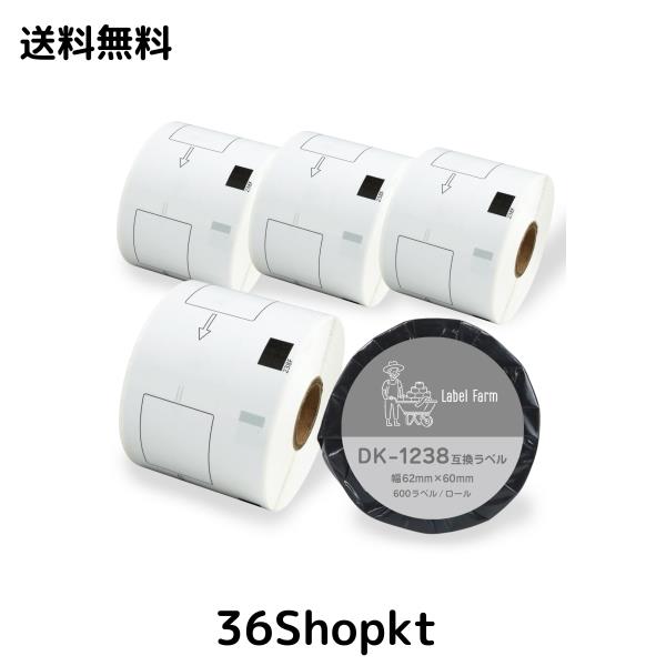 【ラベルファーム】(インボイス対応) DK-1238 ブラザー 互換食品表示用ラベル 幅62mm x 75mm x 500枚 QL-800 / QL-820NWB (5ロール)