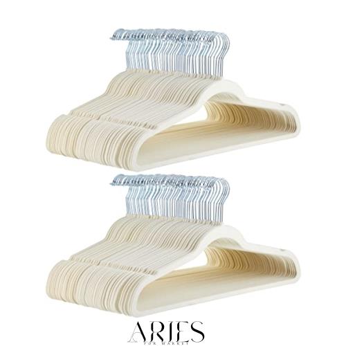 Amazonベーシック ハンガー 100本組 滑らない かたくずれ防止 ベルベット製 アイボリー