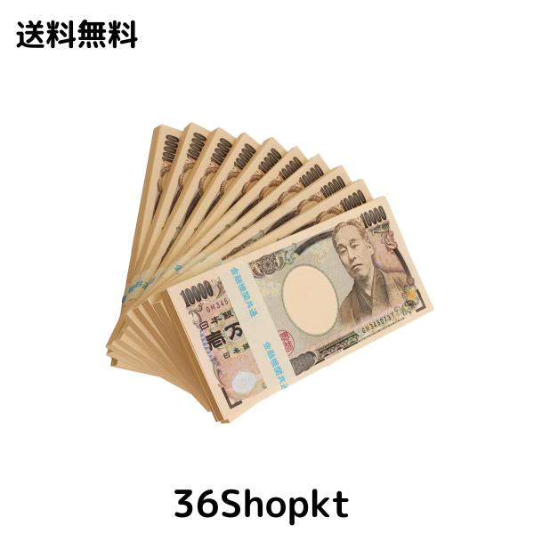1万円札と同じサイズでクリーム色の無地の用紙です。 1束は100枚です。 帯は銀行で使用している本物です。 (金融機関の文字の位置は札束ごとにバラバラとなっております。) ※上記写真は、見本のため上に本物の1万円札を挟んでいます。 ご使用時には、ご自分で本物の1万円札を入れてください。 サイズ 一万円札と同じ(縦76mm×横160mm) ●重さ 約93g