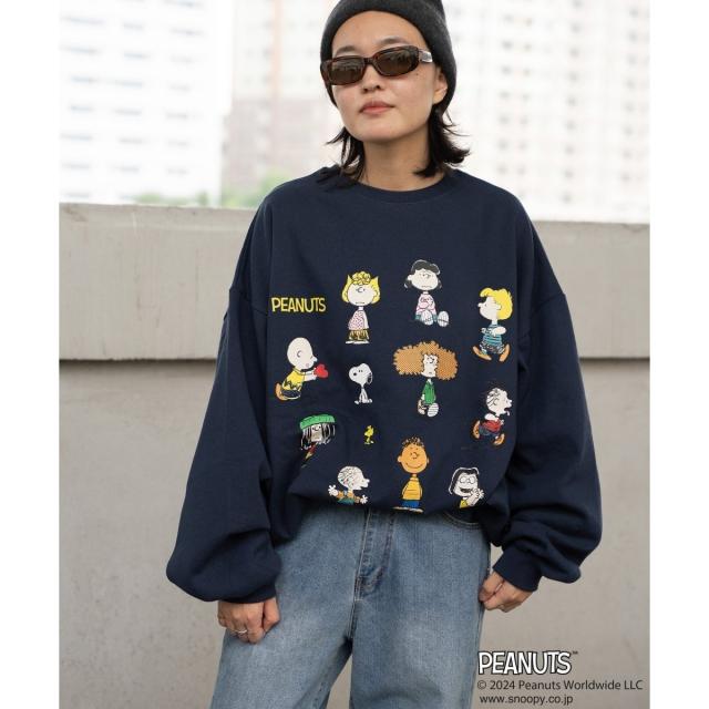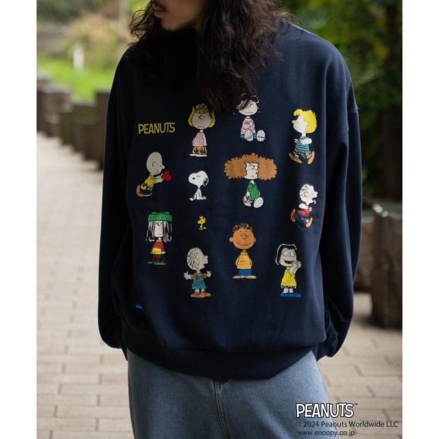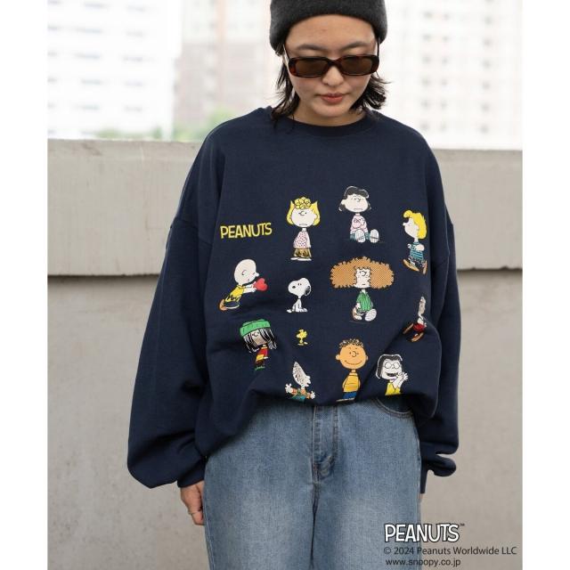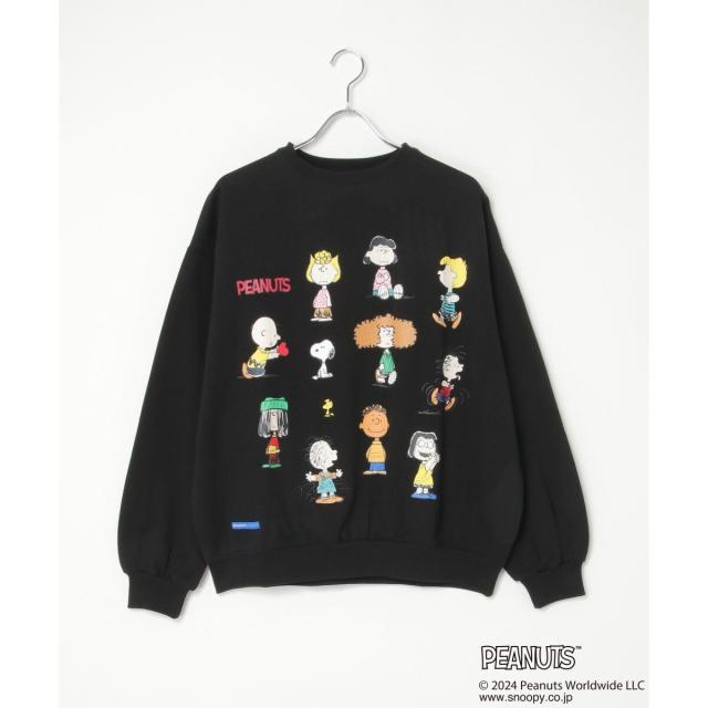スヌーピーをはじめ、ピーナッツのキャラクターが描かれたスウェットプルオーバー。