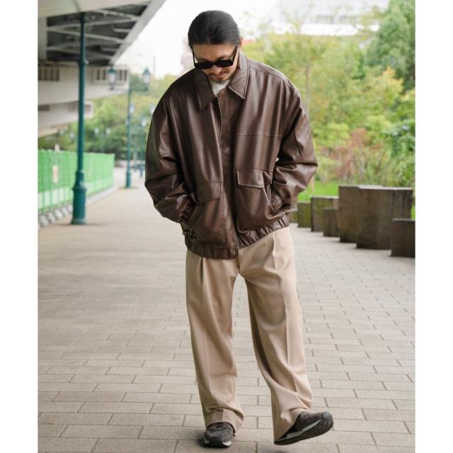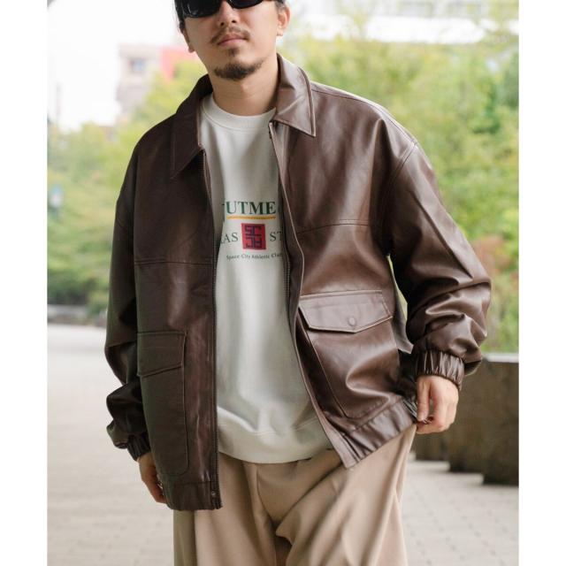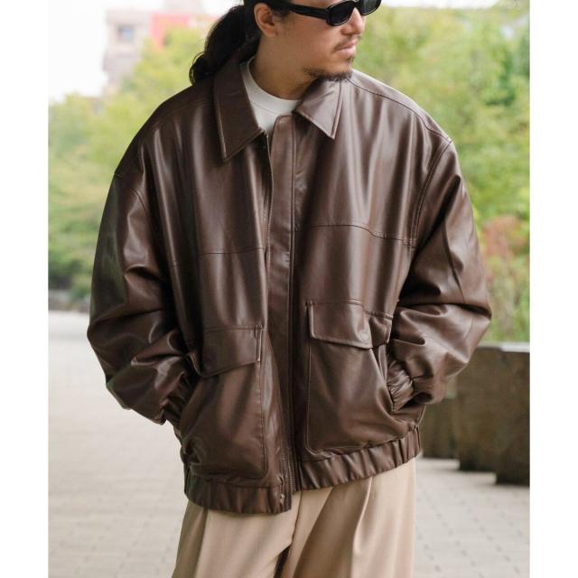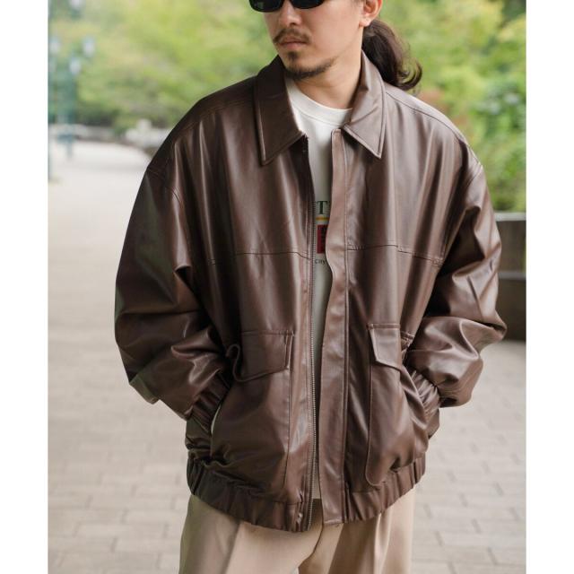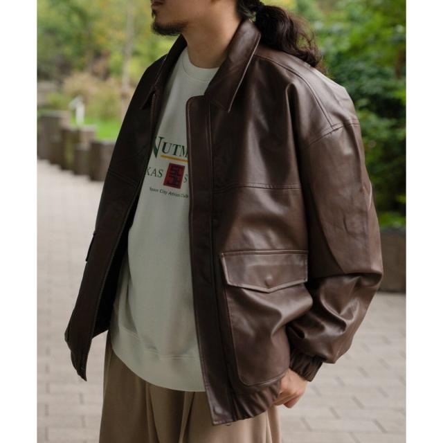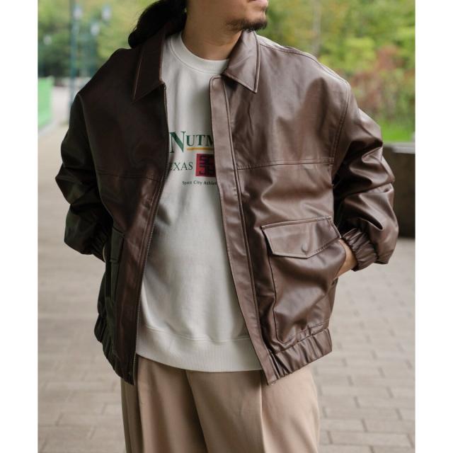 A−2フライトジャケットのディテールを採用した合皮ジャケット。