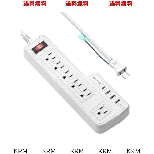 Micshion 電源タップ Type-C付き(PD機能) コンセント(2400W) 延長コード2m 6AC充電口 4USBポート 壁取付用固定フック 急速充電可能