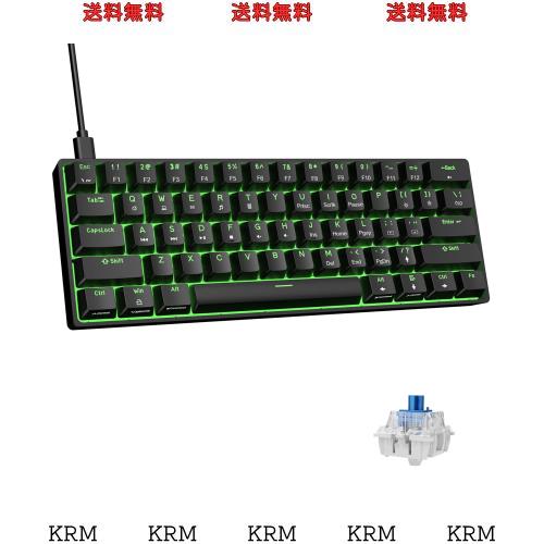 DIERYA ゲーミングキーボード 青軸 Mini 小型 メカニカルキーボード 60%レイアウト 61キー 英語配列 有線 キーボード 着脱式 USB C 電源