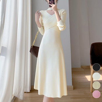 ワンピース ニットワンピースレディース千鳥柄切替秋冬