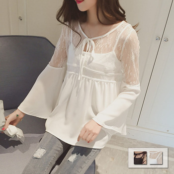 胸元から切り替えデザインのシースルートップスとキャミソールの2点セット