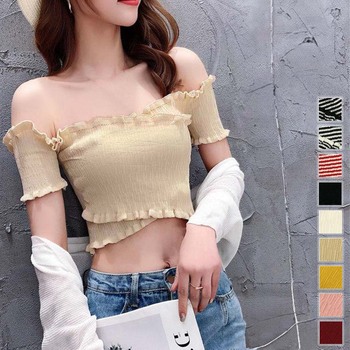 サマーニット オフショルダー 肩だし トップス オフショル フリル 春夏 送料無料 即日発送