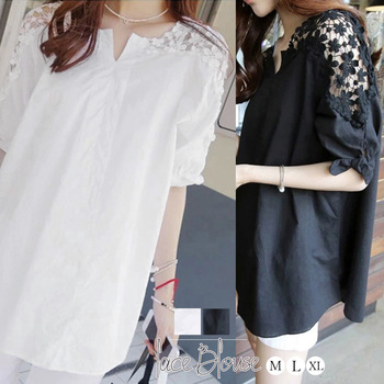 袖部分の透け感がとっても涼しげのショルダーフラワーレースブラウス