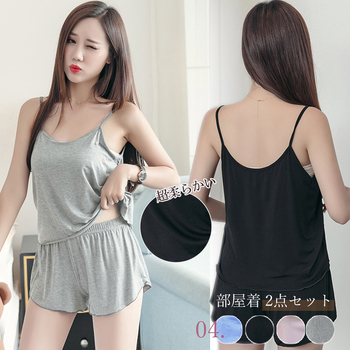 ルームウエア レディース 部屋着 2点キャミソール ショーパン 柔らか パジャマ 送料無料 即日発送