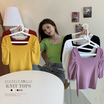 さりげなく可愛さを格上げしてくれるパフスリーブショート丈ニットトップス