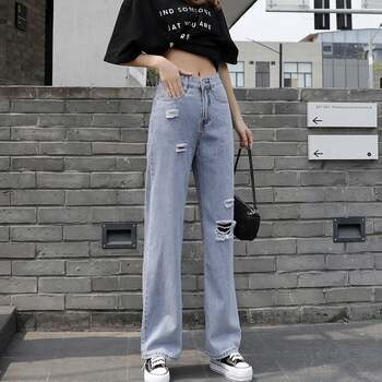 ジーパン 脚長美脚/ボトムスオルチャン/カジュアルジーンズレディース ダメージ加工 デニムワイドパンツ ハイウエスト ロングパンツ 着やせ ゆったり おしゃれ 20代 30代 40代ジーパン 脚長美脚 ボトムスオルチャン カジュアルジーンズ
